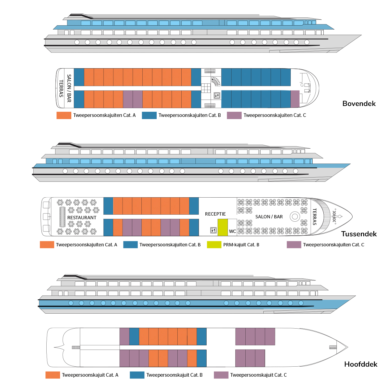 | Hoofddek | € 2.199 p.p. | € 2.799 p.p. |