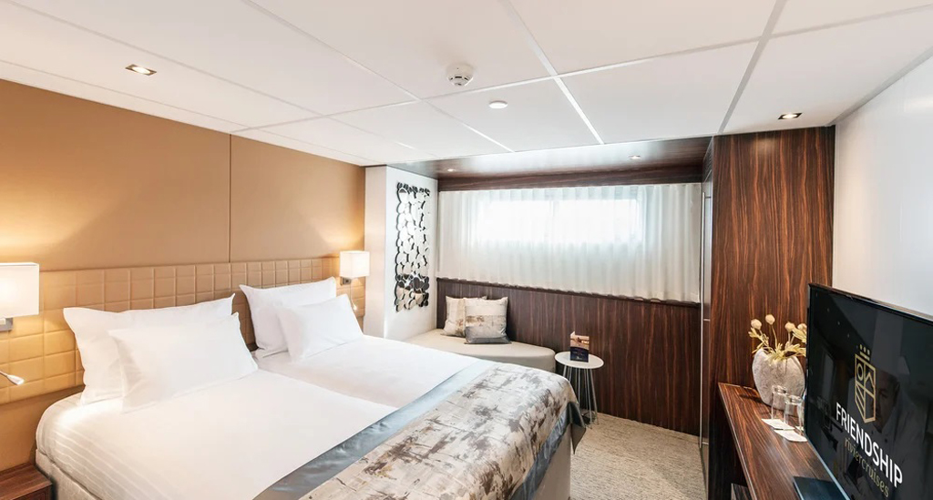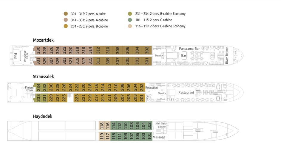 Graag maken wij u erop attent dat de machinekamer zich doorgaans achterop het schip bevindt op het onderste dek. Om deze reden zijn de Economy cabines lager geprijsd.