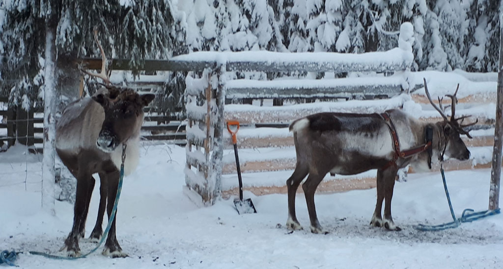 Wat zou een reis naar Lapland zijn zonder rendieren te zien! Na een rustige ochtend brengen we aan het begin van de middag een bezoek aan een lokale rendierboerderij. De herder vertelt u verhalen over zijn rendieren en hun leven in de natuur. U kunt rendieren voeren en foto’s maken. In een Lapse hut, genaamd kota, geniet u van verse koffie gemaakt op een open vuur met een traditioneel lokaal zoet gebakje. U zult zien dat er honderden rendieren op de boerderij zijn, maar u mag de rendierherder nooit het exacte aantal rendieren vragen omdat dat onbeleefd is. Het hoogtepunt van dit bezoek is een sledetocht van ca. 1,5 kilometer, getrokken door rendieren, door het besneeuwde bos.